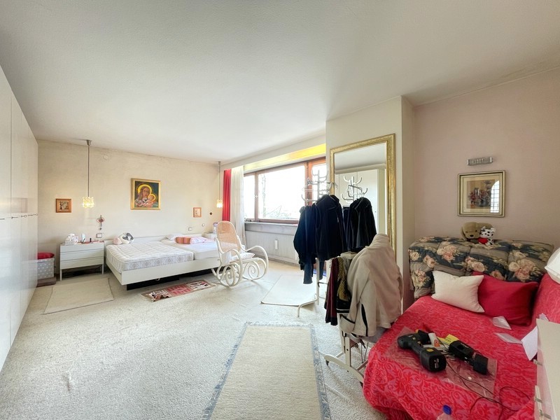 Im Obergeschoss setzt sich das Raumangebot überzeugend fort. Ein großes Kinderzimmer mit Zugang zum Balkon, zwei weitere Zimmer sowie ein Tageslichtbad mit Badewanne und Dusche schaffen beste Voraussetzungen für das Familienleben. Besonders angenehm ist der separate Elternbereich: Das großzügige Schlafzimmer öffnet sich zu einer eigenen Terrasse und wird durch ein Bad en suite ergänzt, ausgestattet mit Dusche, Badewanne, Bidet, Waschbecken und WC – hier fehlt es an nichts. Ein Hauswirtschaftsraum auf dieser Ebene sorgt für kurze Wege; von hier aus gelangt man zudem auf den bislang nicht ausgebauten Dachboden, der zusätzliche Fläche bereithält – sei es als Stauraum oder mit Perspektive für einen späteren Ausbau.