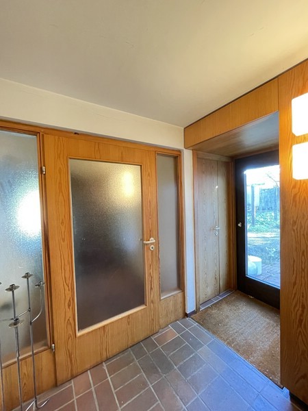 Durch die Hanglage liegt das Haus zur Straßenseite hin auf Vollgeschossniveau und ist hier direkt mit der Doppelgarage verbunden. Im Inneren entfaltet sich die charakteristische Split-Level-Architektur mit mehreren Halbgeschossen, die dem Gebäude seinen besonderen Charme verleiht. Der Eingangsbereich umfasst ein Gäste-WC, gefolgt von einer großzügigen Garderobe mit Einbauschränken und Zugang zum Garten. Zudem befinden sich im Erdgeschoss ein Esszimmer mit Blick in den Innenhof und angrenzender Küche auf der einen Seite sowie ein halb offen gehaltener großer Arbeitsbereich auf der anderen Seite. Eine Ebene tiefer erschließt sich das Wohnzimmer mit vorgelagerter Terrasse, großen, hohen Fensterflächen und direktem Zugang in den gewachsenen Garten. Der nach unten versetzte Wohnraum bleibt durch die offene Verbindung zum Essbereich optisch verbunden und bietet einen besonders schönen Lichteinfall.