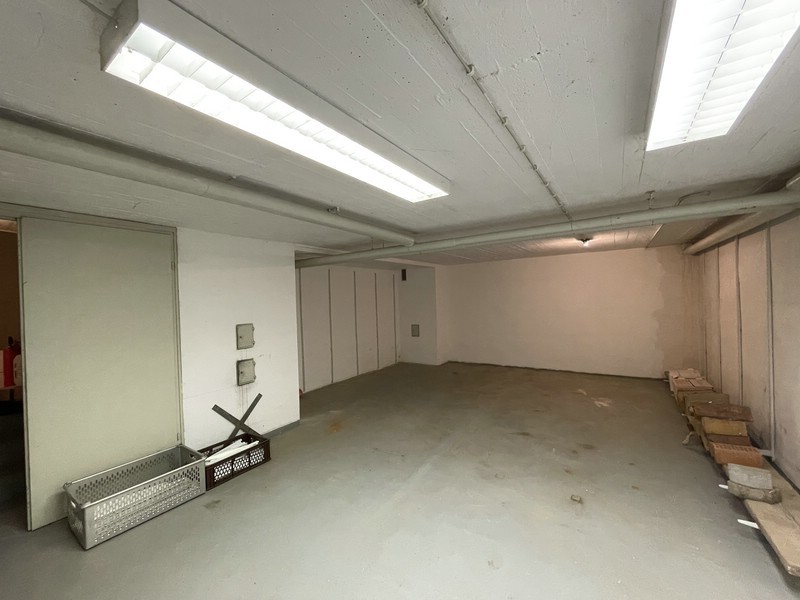 Über mehrere Halbebenen gelangt man in die unteren Bereiche des Hauses: Ein großer Wohnraum – trotz Souterrainlage dank großzügiger Fensterfront nahezu vollständig belichtet – bietet direkten, ebenerdigen Zugang in den Garten und vielfältige Nutzungsmöglichkeiten. Angrenzend liegen eine große Waschküche mit Oberlicht und eine Sauna, von der man über eine Außentreppe ins Freie gelangt. Neben dem Vorratsraum folgt eine weitere Ebene tiefer ein Anschlussraum sowie klassische Kellerräume, darunter zwei übergroße Abstell- bzw. Hobbyräume. Die Öl-Zentralheizung (Baujahr 1981) befindet sich ebenfalls im Untergeschoss, der Öltank ist im Bereich der Einfahrt vergraben.