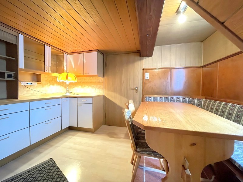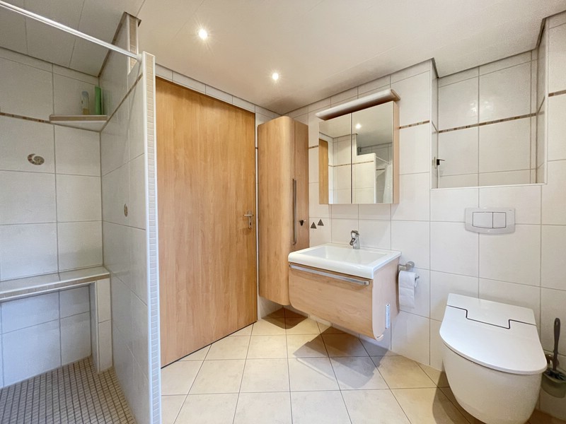 Im Erdgeschoss erwartet Sie ein gemütliches Wohnzimmer sowie eine Küche und ein Schlafzimmer. Ein weiteres Zimmer lässt sich ideal als Ankleide oder Arbeitsbereich nutzen. Das moderne Bad mit Fenster, Dusche und WC ist – ebenso wie das Wohnzimmer – mit Fußbodenheizung ausgestattet. Ergänzend gibt es ein zweites Badezimmer, das vom Treppenhaus aus zugänglich ist. Dieses freundliche Bad wurde zuletzt in den 1990er-Jahren renoviert und verfügt über Dusche, Waschbecken, WC sowie einen Waschmaschinenanschluss.