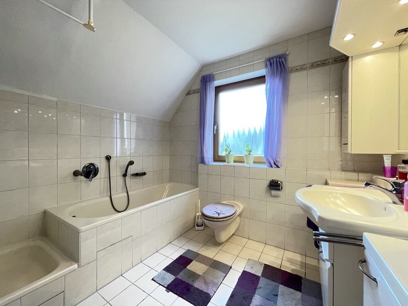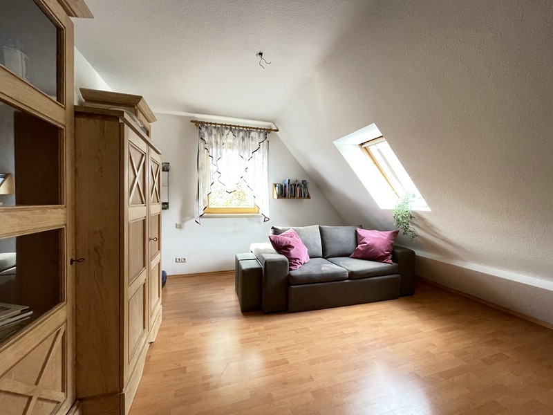 Im Obergeschoss warten zwei Kinderzimmer, ein Elternschlafzimmer sowie das Badezimmer mit Dusche, Badewanne, WC und Waschtisch. Und weil man nie genug Stauraum haben kann, ist das Haus vollständig unterkellert. Dort gibt es nicht nur Platz für Vorräte und die Waschmaschine, sondern auch einen großen beheizten Hobbyraum, in dem man sich kreativ austoben oder mit Freunden und Familie feiern kann. Außerdem findet hier die moderne Ölbrennwertheizung aus dem Jahr 2023 ihren Platz.