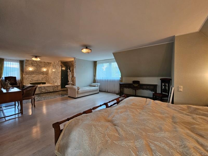 Die Villa bietet zahlreiche lichtdurchflutete Räume mit einer durchdachten Grundrissgestaltung, die sowohl repräsentative Zwecke als auch privaten Rückzug perfekt miteinander vereint. Angefangen bei der großzügigen Eingangshalle, über den offenen Wohn-, Ess-, Küchen- und Wintergartenbereich bis zum Schlafbereich mit Badezimmer und angeschlossenem Ankleidezimmer. Hochwertige Materialien und stilvolle Details schaffen ein elegantes Wohnambiente auf höchstem Niveau. Daneben sind noch ausreichend weitere Flächen vorhanden, die Ihnen z. B. die Möglichkeit eröffnet Ihre Unternehmung mit im Gebäude zu integrieren.