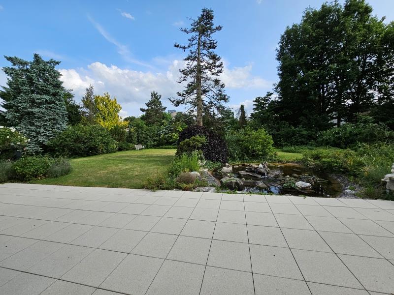 Das Herzstück des Hauses ist die großzügige Terrasse, die einen herrlichen Blick auf den wunderschön eingewachsenen Garten freigibt. Highlight ist der imposante Gartenteich, der dem Außenbereich eine besonders idyllische Atmosphäre verleiht und zum Entspannen einlädt.