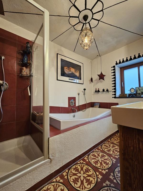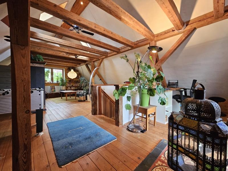 Im Erdgeschoss befinden sich die großzügige "Gute Stube", eine gemütliche Wohnküche mit Holzofen (übernehmbar), ein Bad im marokkanischen Stil, ein Gäste-WC, ein Lagerraum mit Waschmaschinenanschluss sowie der Heizungsraum mit Öltanklager. Über eine Holztreppe gelangen Sie ins Obergeschoss mit vier vielseitig nutzbaren Schlaf- oder Wohnräumen sowie einem geräumigen Duschbad. Das ausgebaute Dachstudio (ca. 37 m²) ist über das Treppenhaus erreichbar und verfügt über direkten Zugang zur Dachterrasse mit traumhaftem Fernblick.