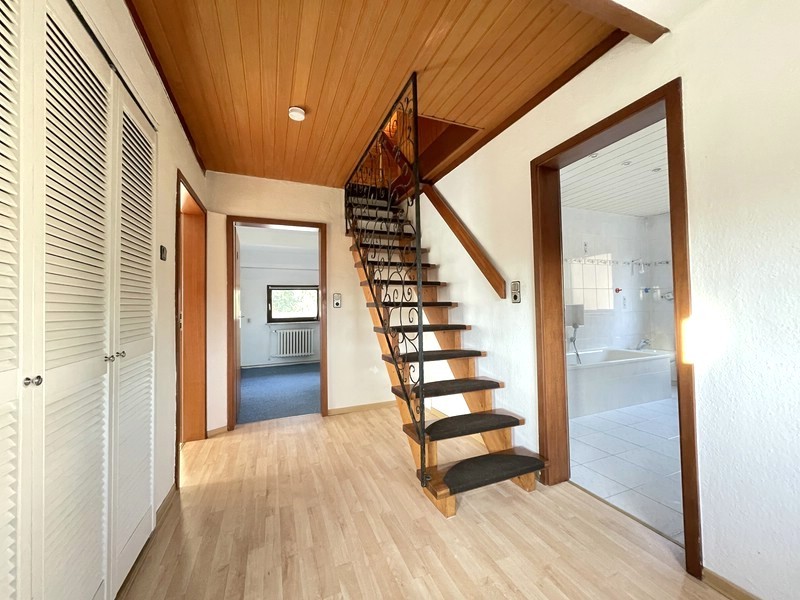 Das nachträglich ausgebaute Dachgeschoss bietet zwei weitere Zimmer mit flexiblen Nutzungsmöglichkeiten – ob als Kinderzimmer oder Arbeitsbereich. Zusätzlich gibt es hier eine Sauna, ideal für entspannte Stunden zuhause.