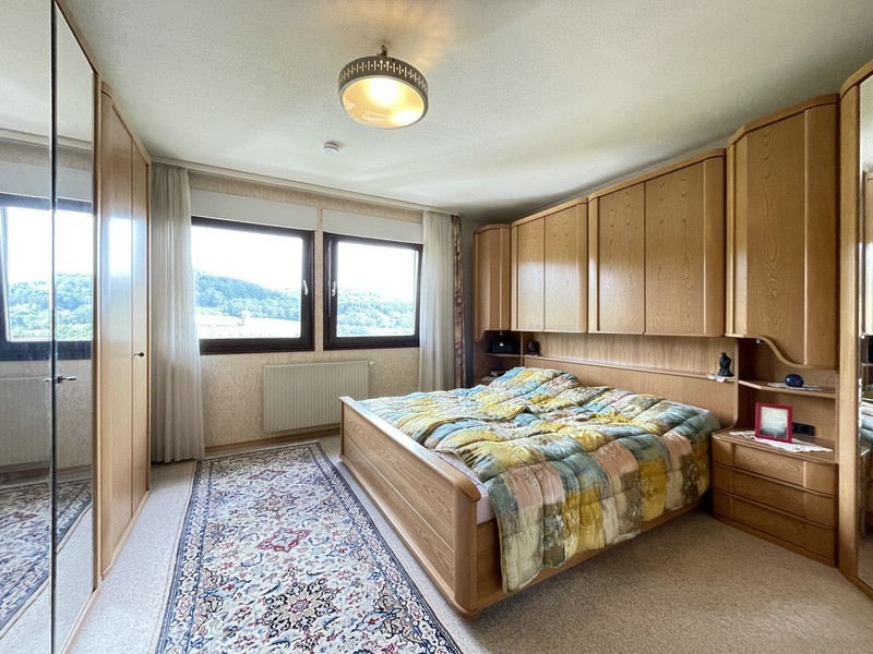 Dieses gepflegte Einfamilienhaus aus dem Jahr 1975 überzeugt nicht nur mit einem über 800 m² großen Grundstück, sondern auch mit einem umwerfenden Fernblick, der den Alltag sofort vergessen lässt. Das Haus wurde in Fertigbauweise errichtet, wobei das Untergeschoss massiv ausgeführt ist. Im Erdgeschoss erwarten Sie rund 98 m² Wohnfläche, ergänzt durch eine vollständig unterkellerte Ebene, die Ihnen nochmals ähnlich viel Raum bietet. Dank der leichten Hanglage haben auch die Räume im Untergeschoss Tageslicht und sind dadurch vielseitig nutzbar – ob als Gäste-, Arbeits- oder Hobbybereich.