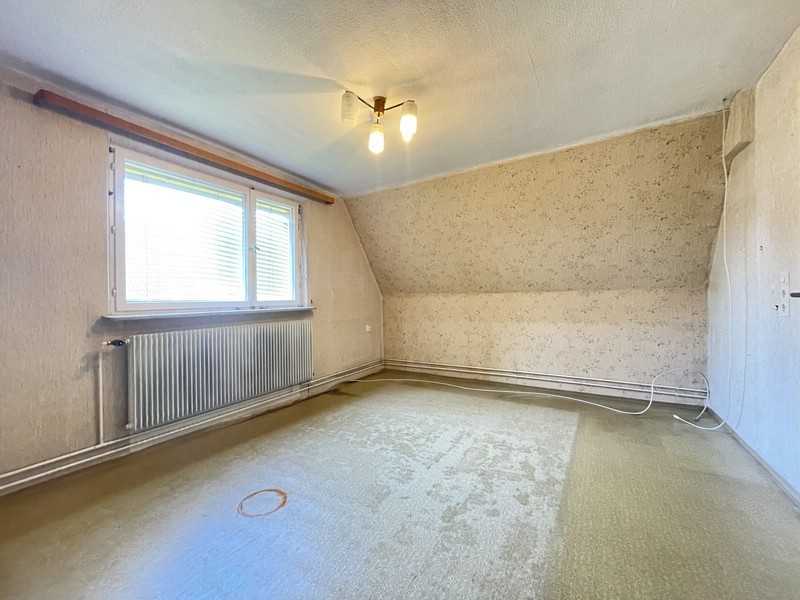Das ursprüngliche Haus stammt aus den frühen 1930er Jahren und wurde 1963 durch einen Anbau ergänzt. Bei einer Sanierung im Jahr 1998 wurden auch die Fenster im Erdgeschoss in den Wohnräumen erneuert. Das Haus verfügt über insgesamt sieben Zimmer, von denen einige als Durchgangszimmer angelegt sind. Von der Eingangsdiele aus erreicht man die Küche mit einer schönen Raumgröße für eine Einbauküche. Das angrenzende Wohn- und Schlafzimmer kann flexibel auch als kombinierter Wohn-Essbereich genutzt werden – ideal für das Familienleben. Im Erdgeschoss findet ebenfalls das Tageslichtbad mit Badewanne, der Waschmaschinenanschluss sowie das separate WC seinen Platz.