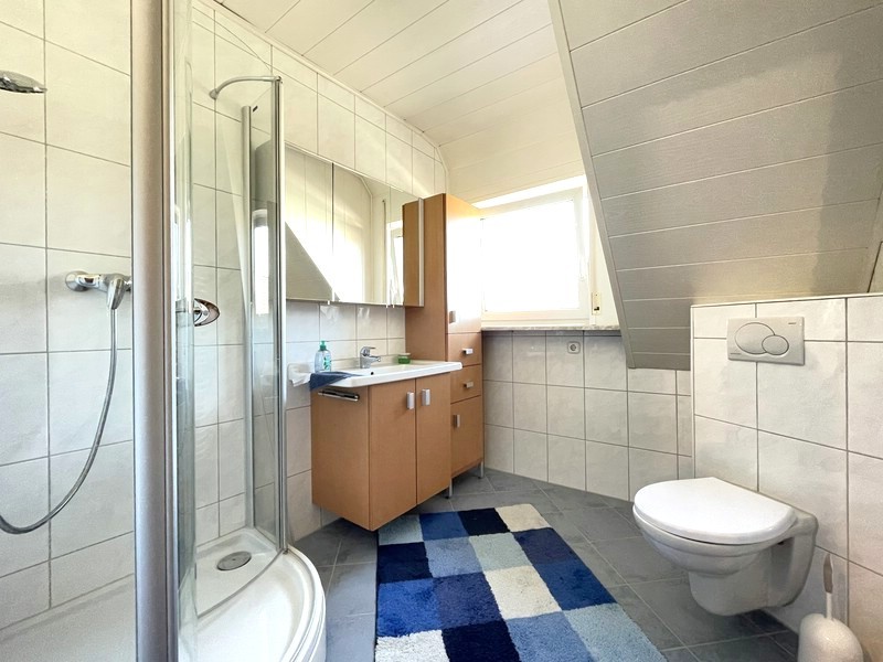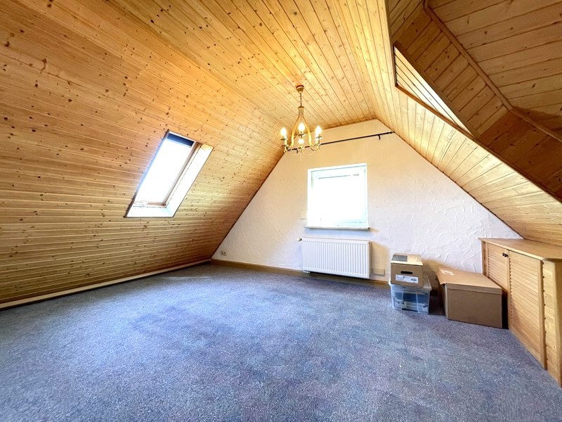 Wer noch mehr Platz braucht, wird sich über den 1993 ausgebauten Dachbereich freuen. Hier sind zwei weitere Räume entstanden, die sich ideal als Gästezimmer, Büro oder Teenagerbereich nutzen lassen. Dazu kommt ein großzügiges Badezimmer mit Eckbadewanne, Waschbecken und WC. Ein Teil des Dachbodens ist bislang noch nicht ausgebaut und bietet zusätzliches Potenzial für weitere Ideen.