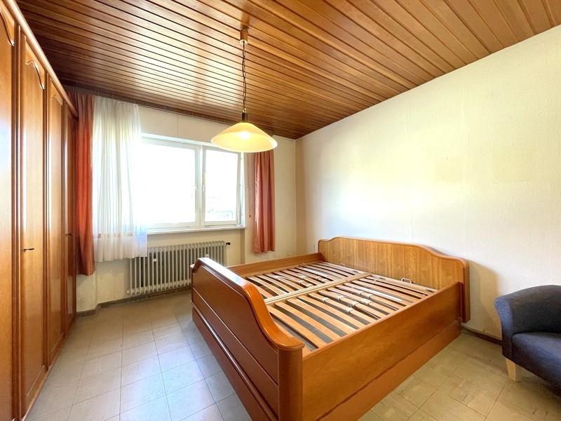 Auch das 1. Obergeschoss bietet eine komplette 3-Zimmer-Wohnung. Hier stehen zwei Schlafzimmer, eine große Wohnküche sowie ein helles Wohnzimmer mit Kamin zur Verfügung (der Kamin müsste vor Inbetriebnahme erneuert werden). Vom Wohnzimmer aus gelangen Sie auf die Loggia, die einen schönen zusätzlichen Außenbereich schafft. Das Badezimmer, zuletzt 2005 modernisiert, verfügt über eine große Eckdusche, Waschbecken und WC. Eine Abstellkammer sorgt für zusätzlichen Stauraum.