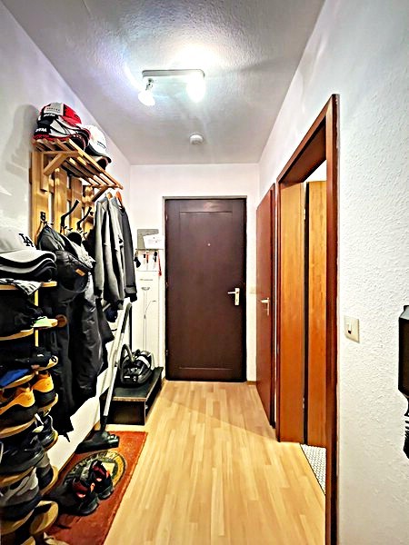 Bereits beim Betreten fällt der Flur mit einer angenehmen Größe auf, der ausreichend Platz für eine Garderobe bietet und einen einladenden Auftakt zur Wohnung bildet. Besonders hervorzuheben ist die durch eine Wand abgetrennte Küchennische, die eine klare Raumstruktur schafft und den Wohnbereich optisch aufwertet. Vom Wohnraum aus gelangt man auf den großzügigen Balkon mit Süd-West-Ausrichtung – ideal, um die Sonne bis in die Abendstunden zu genießen. Das Badezimmer ist mit einer Badewanne sowie einem Waschmaschinenanschluss ausgestattet und komplettiert das stimmige Gesamtbild dieser Wohnung. Ein separater Abstellraum innerhalb der Wohnung bietet zusätzlichen Stauraum.