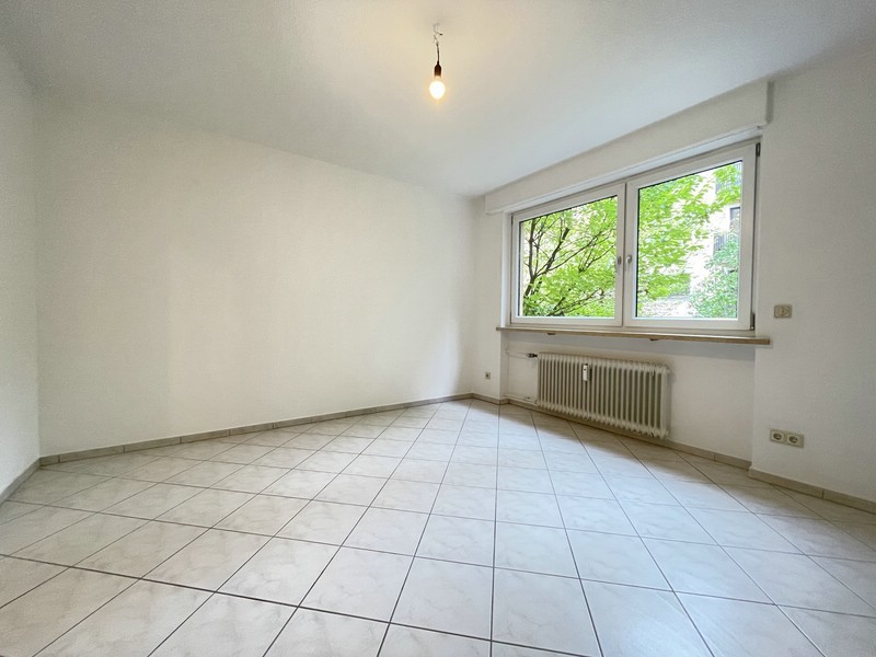 Das Wohnzimmer bietet reichlich Platz und führt hinaus auf den Balkon, der sich zur Rückseite des Hauses öffnet – ein angenehmer Blick ins Grüne, mitten in der Stadt. Auch die beiden weiteren Zimmer überzeugen durch ihre Größe und vielseitige Nutzungsmöglichkeiten – ob als Schlaf-, Arbeits- oder Kinderzimmer.