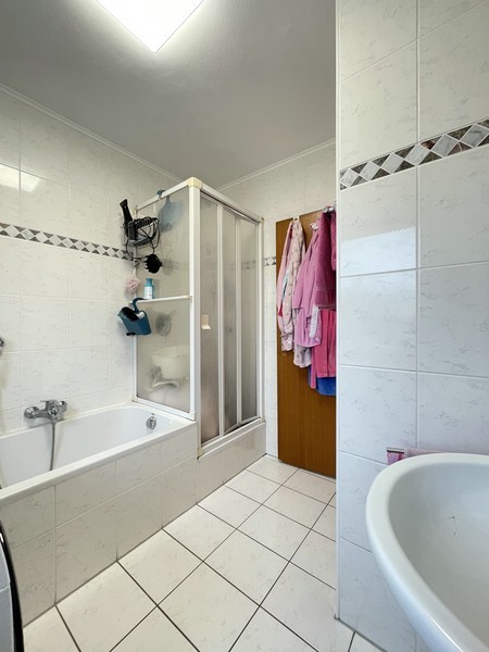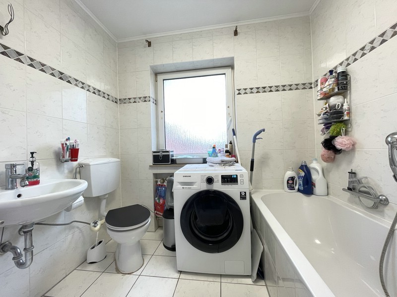 Das Tageslichtbad kann sich sehen lassen: Dusche und Badewanne, Waschmaschinenanschluss, WC und Waschbecken – hier fehlt es an nichts. Und weil man nie genug Stauraum hat, gibt's einen separaten Abstellraum in der Wohnung. Wer schon einmal versucht hat, den Staubsauger "irgendwo elegant zu verstecken", weiß das zu schätzen.