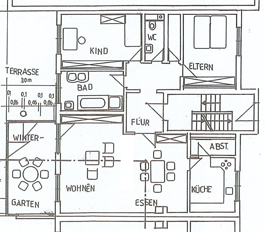Bereits beim Betreten der Wohnung empfängt Sie ein großzügiger Flur mit ausreichend Platz für eine Garderobe und zusätzlichen Stauraum. Von hier aus sind alle Räume bequem erreichbar. Zwei helle, gut geschnittene Zimmer mit bodentiefen Fenstern bieten vielseitige Nutzungsmöglichkeiten – ob als Kinderzimmer, Homeoffice oder Elternschlafzimmer. Die großen Fensterflächen sorgen für eine angenehme, lichtdurchflutete Atmosphäre und ein freundliches Wohngefühl. Das Herzstück der Wohnung ist das großzügige Wohnzimmer, große Fensterflächen schaffen auch hier ein helles und einladendes Ambiente. Vom Wohnbereich aus gelangen Sie direkt in den Wintergarten sowie auf die angrenzende Terrasse – ideale Orte zum Entspannen und Genießen zu jeder Jahreszeit. Die Küche ist direkt vom Wohnzimmer aus erreichbar und bietet ausreichend Platz zur individuellen Gestaltung, da derzeit keine Einbauküche vorhanden ist. Angrenzend an die Küche befindet sich ein praktischer Vorratsraum, der zusätzlichen Stauraum für Lebensmittel und Haushaltsutensilien bietet und für eine optimale Organisation sorgt. Das moderne, großzügige Tageslichtbad überzeugt mit einer bodentiefen Dusche, WC und Doppelwaschbecken. Ein zusätzliches Gäste-WC sorgt für weiteren Komfort im Alltag.