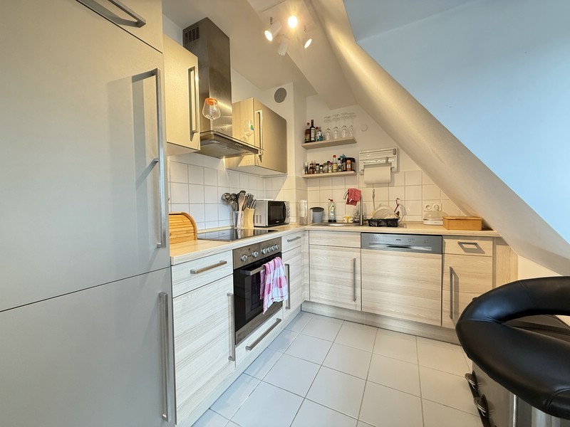 Unter dem Dach dieses sehr schönen und gepflegten 30er Jahre Hauses liegt dieser Wohn(t)raum. Viel Licht, eine gehobene Ausstattung und modernes Ambiente mit bis in den Spitzboden reichender Deckenhöhe werden hier kombiniert mit dem Flair der 30er Jahre.
