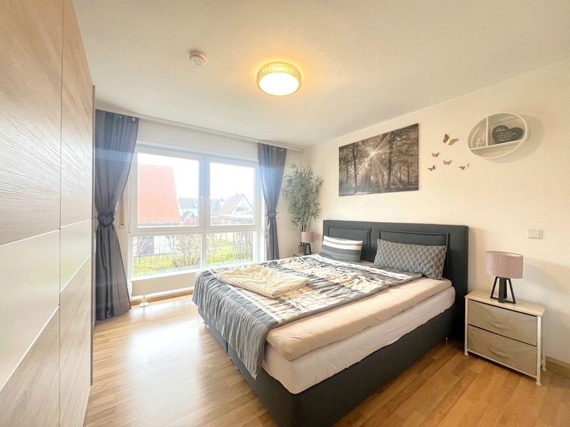 Zwei helle Schlafzimmer mit bodentiefen Fenstern sorgen für eine freundliche und lichtdurchflutete Atmosphäre und bieten vielfältige Nutzungsmöglichkeiten – ob als Schlaf-, Kinder- oder Arbeitszimmer.